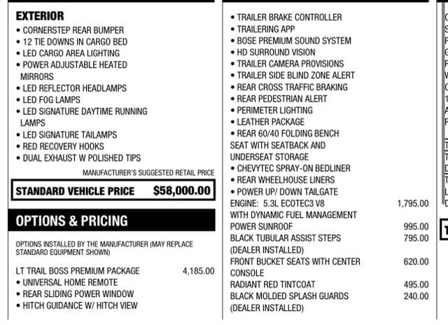 2nd day of owning,battery dead.Said cuz I left trailer plugged in.7th day battery dead and engine light on.Service checked and found no issue.On way home radio comes on and off,auto stop not working,skipping badly.They replaced a burnt wire.Back at shop now for 9 days ,found nothing wrong.Between wife and I have had chevys for 40 years all high end.This will be 17 days in shop out of owning it for 35.....sick about it. - 5.0
