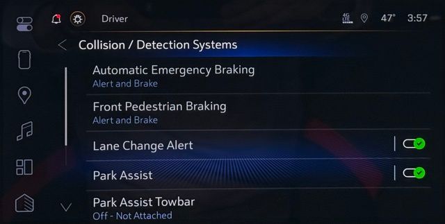 - Blind spot: Blind Zone Steering Assist with Trailering active