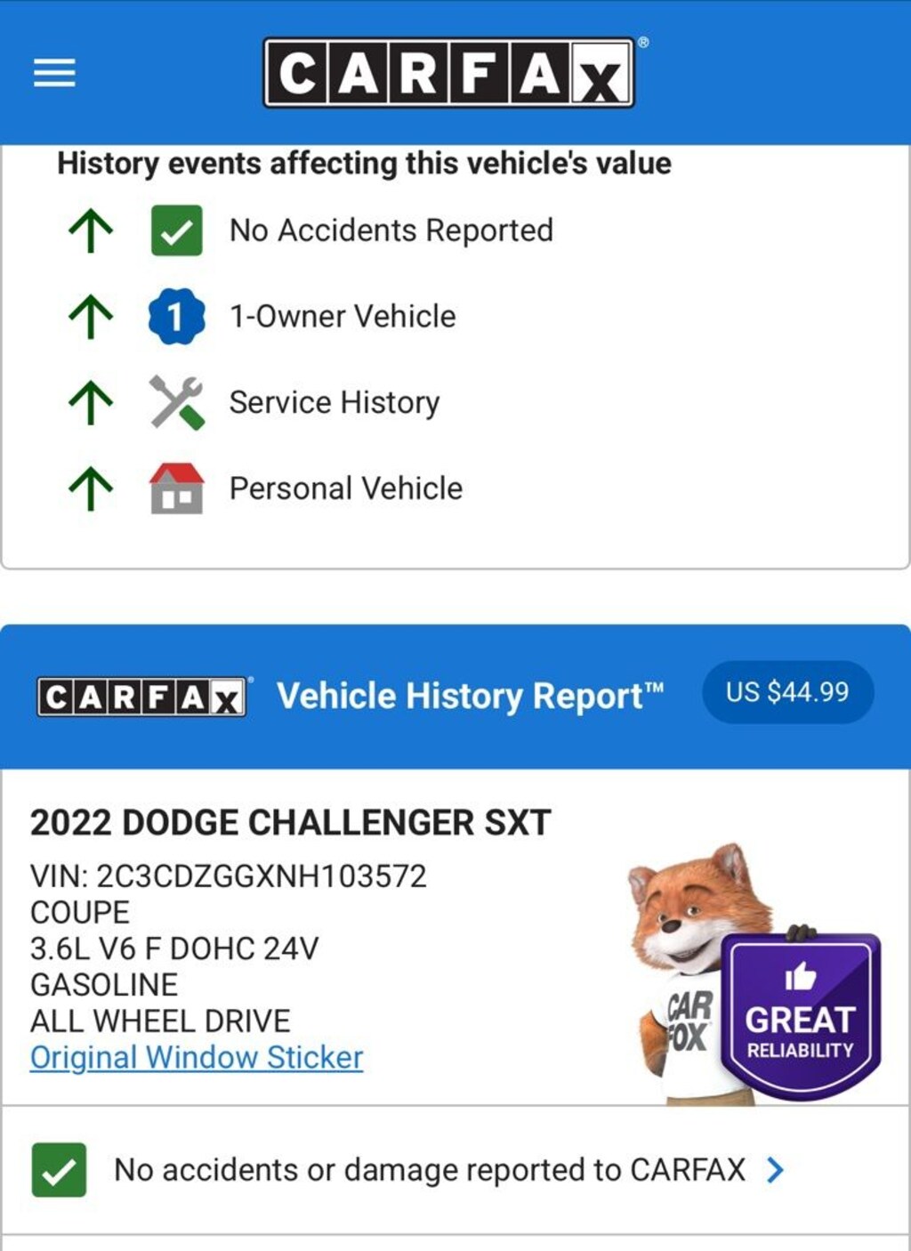 Purchased this vehicle as a daily driver. I have a lengthy daily highway commute so I figured an AWD Challenger would be a nice cruiser. It is! It's comfortable, quick and gets pretty good mileage. What floored me is the reliability. I have NEVER had an issue with this car. NOTHING. It just works. Traction in snow is remarkable. I love the shocked looks from folks when they see a Challenger handling the snow with ease. Heated steering wheel and heated/ventilated seats don't hurt at all. I honestly expected this car to give me headaches. To the contrary, it has been terrific. I would purchase it all over again without hesitation.… - 5.0