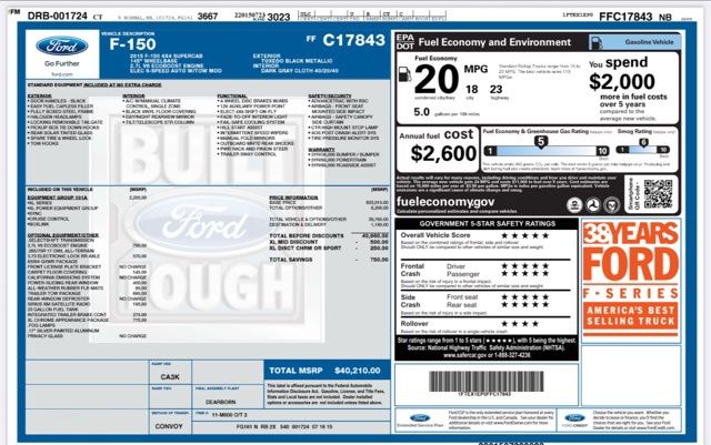 - Fuel economy combined: 19mpg