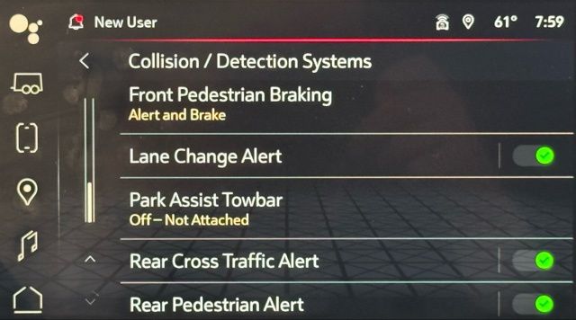 - Rear collision: Rear Cross-Traffic Alert warning