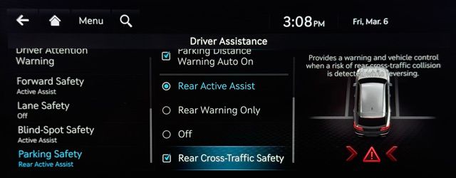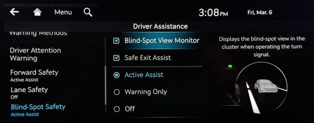 - Blind spot: Blind-Spot Collision-Avoidance Assist (BCA) active