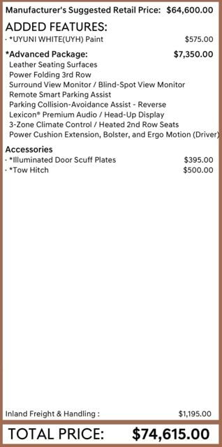 - Exterior length: 4,945mm (194.7")