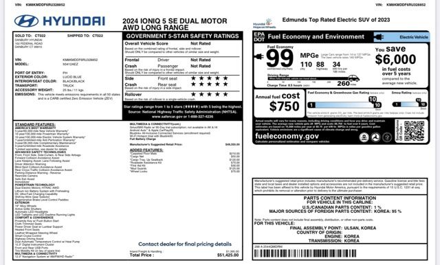 - Combined Fuel Economy (kWh)