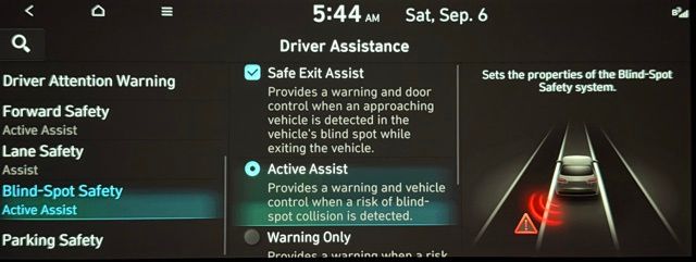 - Blind spot: Blind-Spot Collision-Avoidance Assist (BCA) active