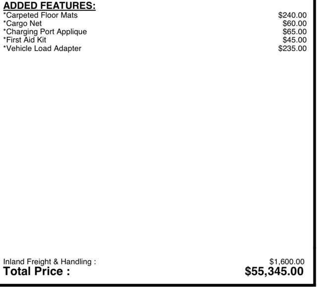 - GVWR: 2,645kg (5,831lbs)
