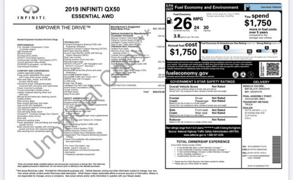 Black Obsidian 2019 INFINITI QX50 ESSENTIAL 4D Sport Utility AWD CVT I4 24/30 City/Highway MPG