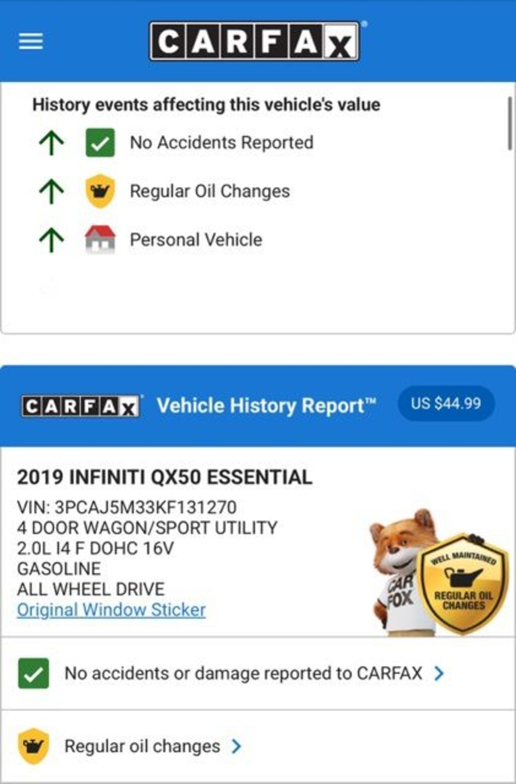 Used 2019 INFINITIQX50 ESSENTIAL