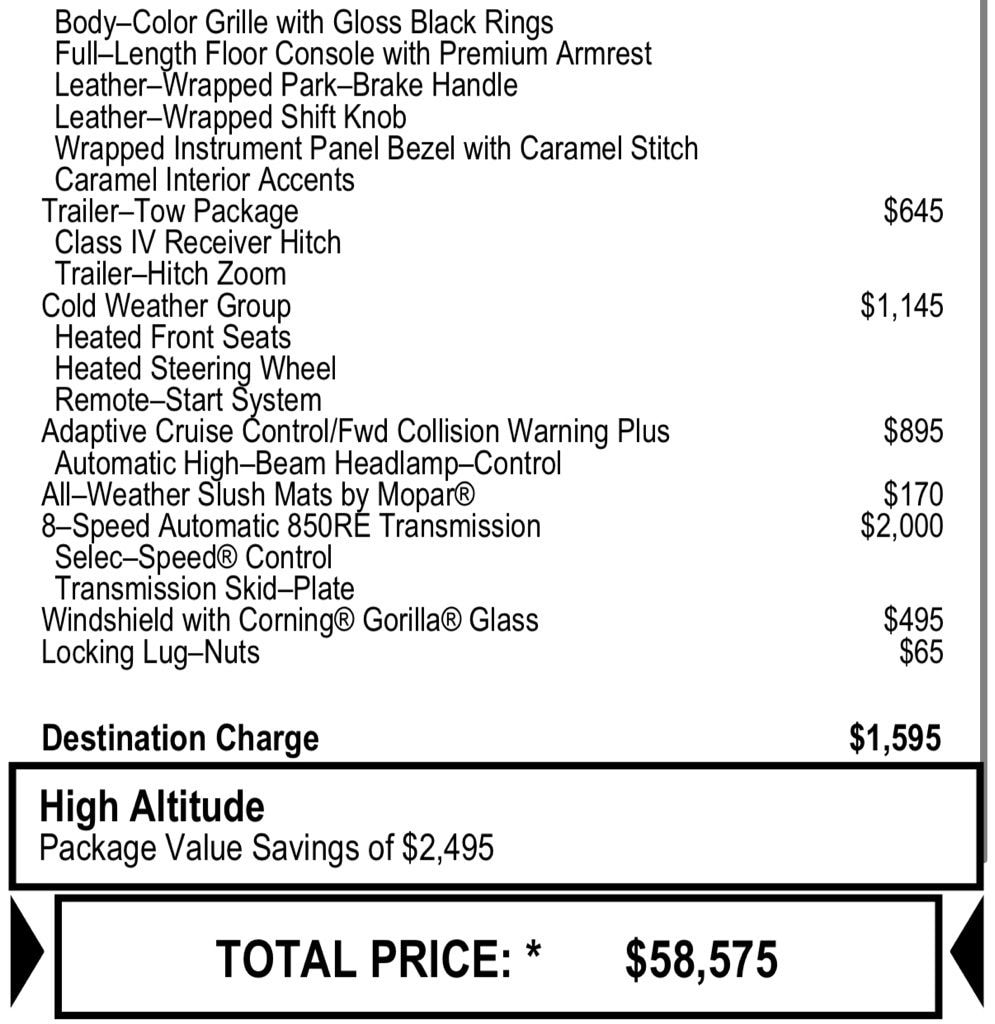 I leased this truck (yes, I'm calling it a truck) and it is amazing. I splurged for the Rubicon and I'm glad I did. It's a great Jeep. Suspension, comfort, power, everything is amazing. As a top of the line Jeep, I would think it would have a few more bells and whistles. Rear heated seats, Heated and cooling seats, etc.