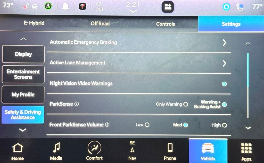 - Lane departure: Active Lane Management active