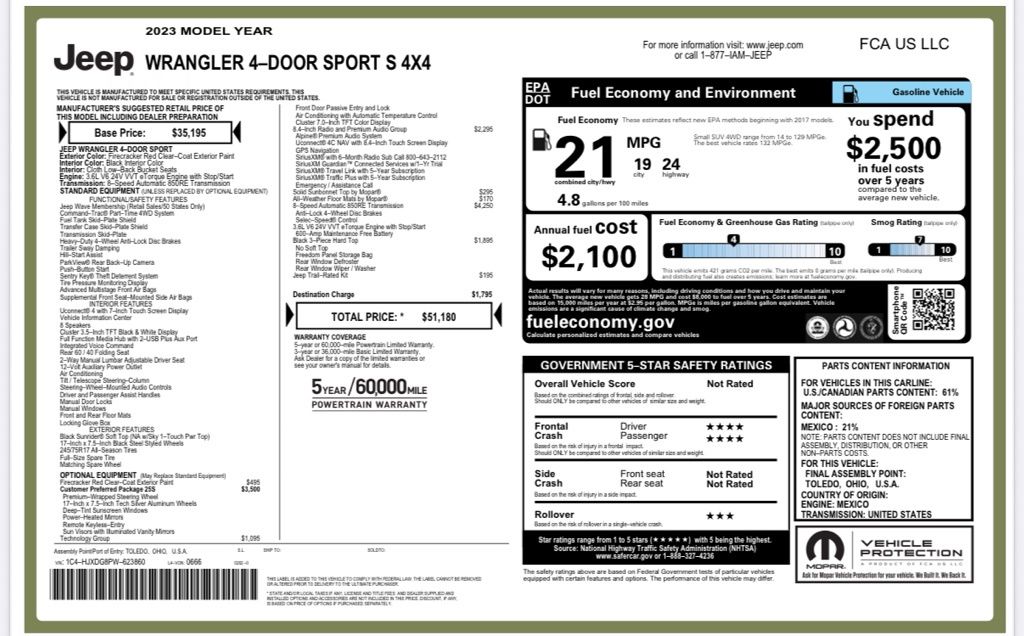 Firecracker Red Clearcoat 2023 Jeep Wrangler Sport S 4WD 8-Speed Automatic 3.6L V6 24V VVT