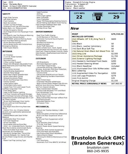 Black 2023 Mercedes-Benz E-Class E 450 4MATIC® 2D Convertible 4MATIC® 9-Speed Automatic 3.0L I6 Turbo 22/29 City/Highway MPG